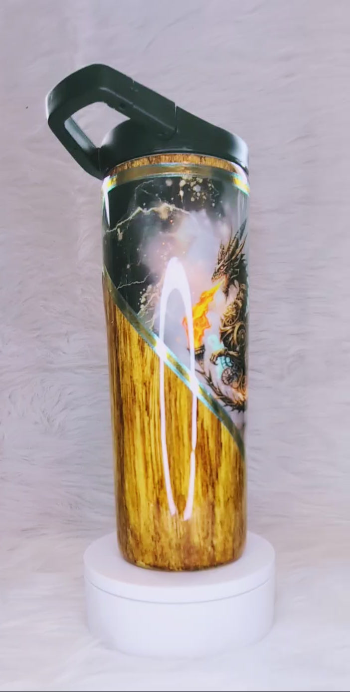 Embrace your adventurous spirit with our 18oz Dual Skinny Steampunk Dragon Travel Mug, a perfect blend of style and functionality. Crafted from durable stainless steel, this tumbler features a stunning dragon design with a woodgrain background that captures the essence of mythical journeys. Whether you're commuting to work or exploring the great outdoors, this travel mug keeps your beverages hot or cold for hours, ensuring you stay refreshed on every adventure. Elevate your drinkware collection and let your imagination soar with every sip!