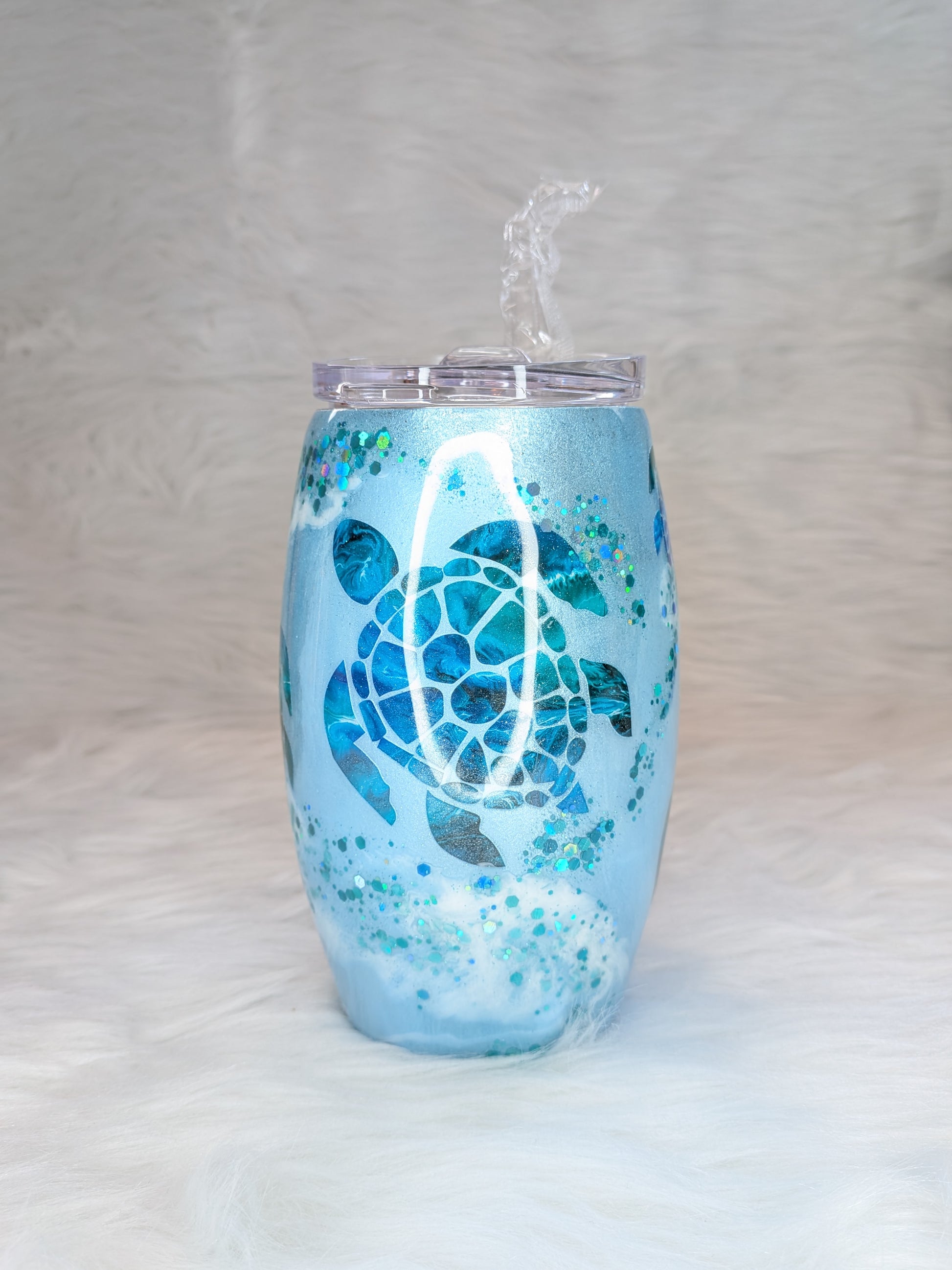 Blue Sea Turtle Peek-a-Boo 15 oz Barrel Coffee Tumbler